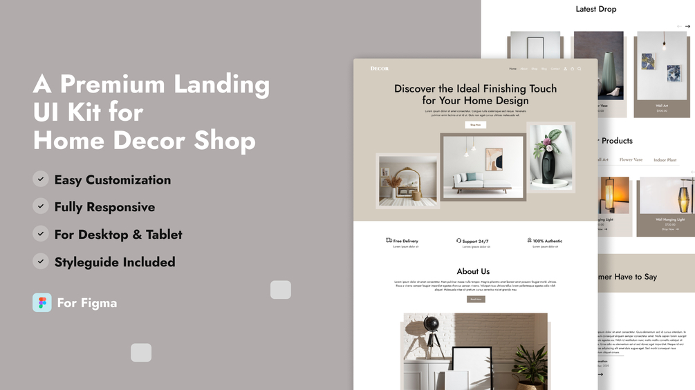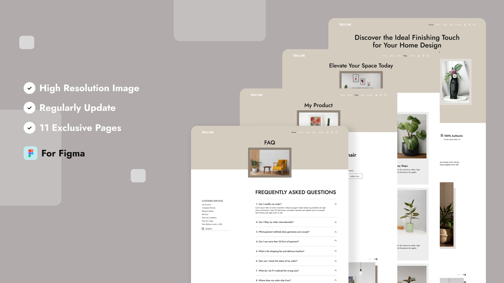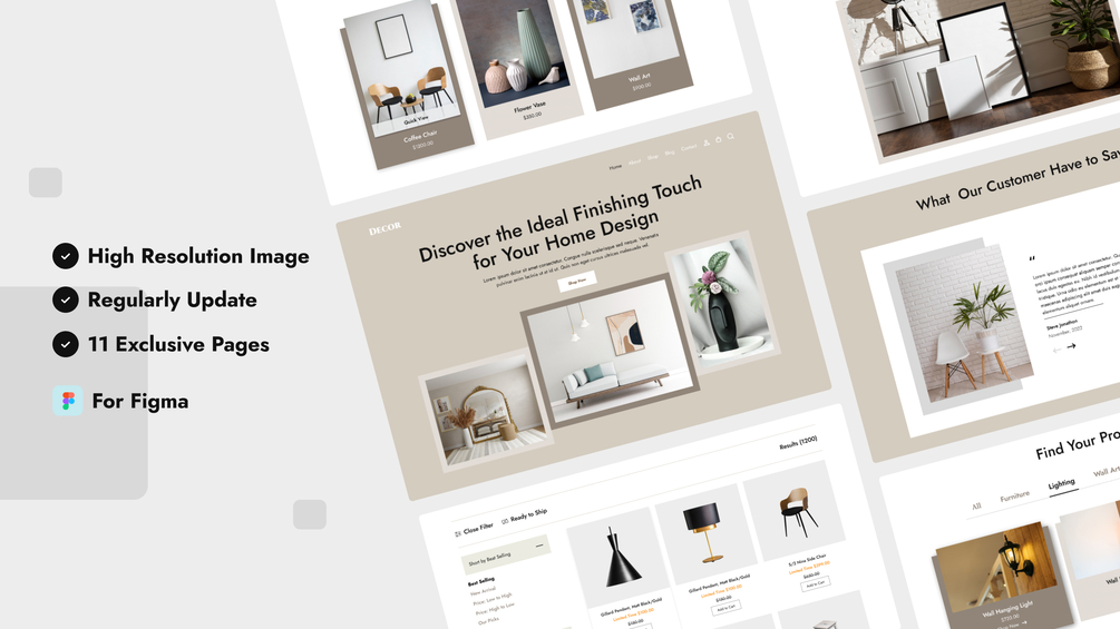 Home Decor E-commerce website is a Figma template carefully crafted for startups, business owners, and entrepreneurs. Its development prioritizes high precision and follows the best UI/UX practices, empowering you to create a project that delivers remarkable results. This E-commerce website with best practices among 11 responsive templates, it's an essential toolkit for anyone designing online stores. All templates were built with a clean and simple technology stack to allow for easy customization and scalability. It is designed with pixel-perfect precision, ensuring that every element is perfectly aligned.
